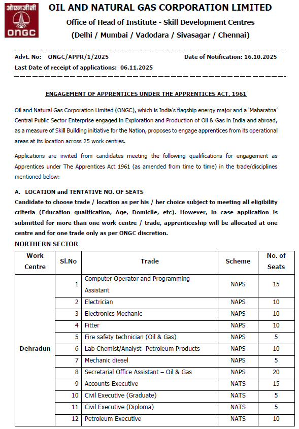 ONGC offers apprenticeships for both technical and non-technical streams. Here’s a brief overview of the eligibility criteria according to trade: